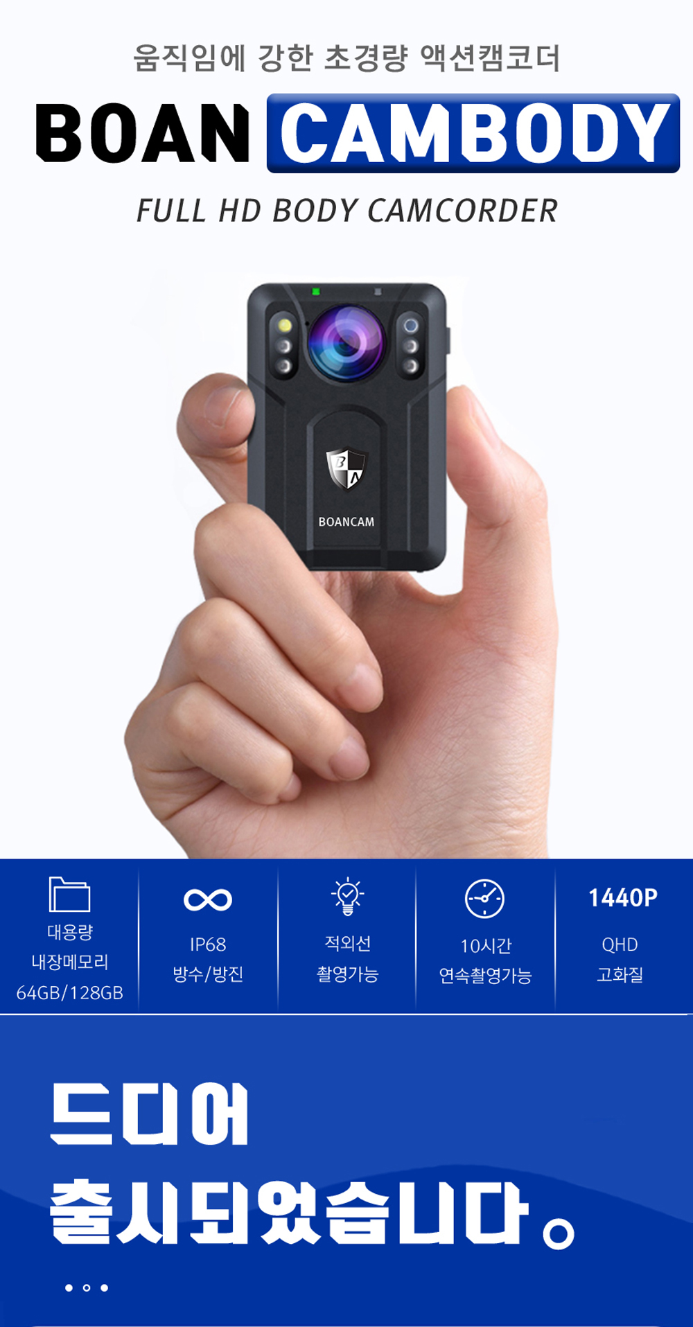 바디캠 구매를 고려하는 분들께 이 제품은 특히 매력적일 거예요. 국내 바디캠 중 처음으로 다양한 음성 안내 기능을 제공하여 사용자 편의를 높였으며, A/S 서비스 역시 1년 무상 보증 기간을 제공하기 때문에 안심하고 사용할 수 있답니다. 심지어 10년 전 구매한 제품도 사후 관리 받을 수 있어 지속적인 지원을 받을 수 있다는 점도 큰 장점이에요.