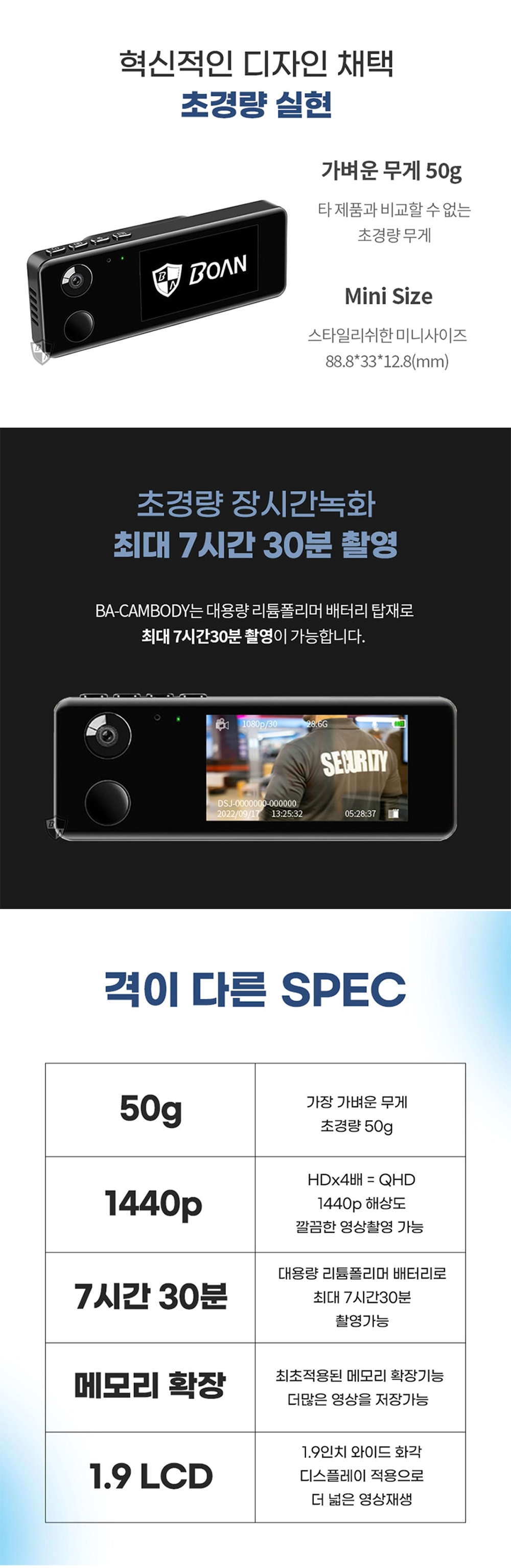 국산액션캠이 최근 많은 주목을 받고 있는 이유는 바로 초경량의 명찰 바디캠으로, 장시간 촬영이 가능하다는 점이에요. 이 제품은 1.9인치 내장 모니터가 있어 실시간으로 화면을 확인할 수 있고, 기기명과 시리얼 넘버 설정이 가능해 다양한 상황에서 유용하게 사용할 수 있답니다. 단독 녹음 기능도 지원하여 영상이 아닌 음성만 필요할 때도 활용할 수 있어요.