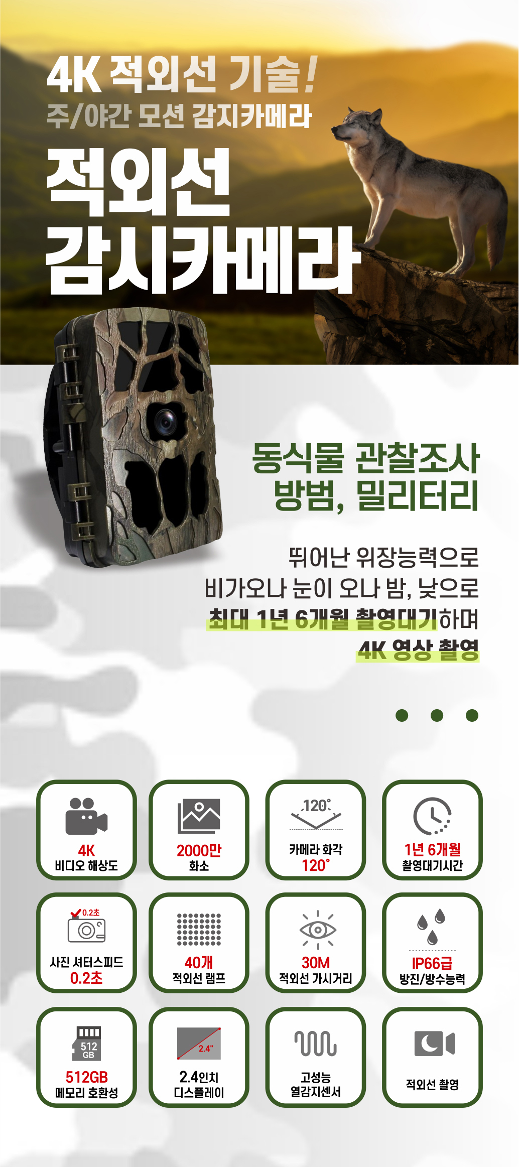 이 제품의 또 다른 매력은 동작감지센서를 통한 저전력 운영이에요. 움직임이 감지될 때만 촬영이 시작되기 때문에 불필요한 전력 소모를 줄일 수 있죠. 감지 거리는 약 20m, 각도는 125도, 감지 높이는 약 70도로 어떤 움직임도 놓치지 않아요. 이러한 기능은 시골 지역 CCTV 설치 비용을 절감하는 데도 큰 도움이 됩니다.