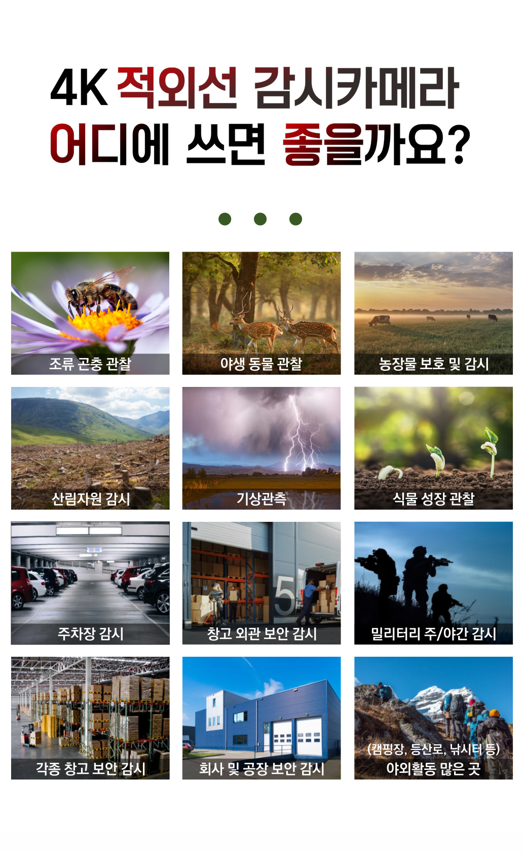 시골CCTV는 타임랩스 촬영 기능으로 시간의 흐름을 한눈에 볼 수 있게 해줘요. 설정된 시간마다 자동으로 촬영되고 인코딩까지 해주니, 시골 풍경이나 농장의 변화 과정을 기록하는 데 유용하죠. 또한 사진촬영기능과 영상과 사진을 동시에 촬영하는 기능으로 순간 포착에도 최적화되어 있습니다.