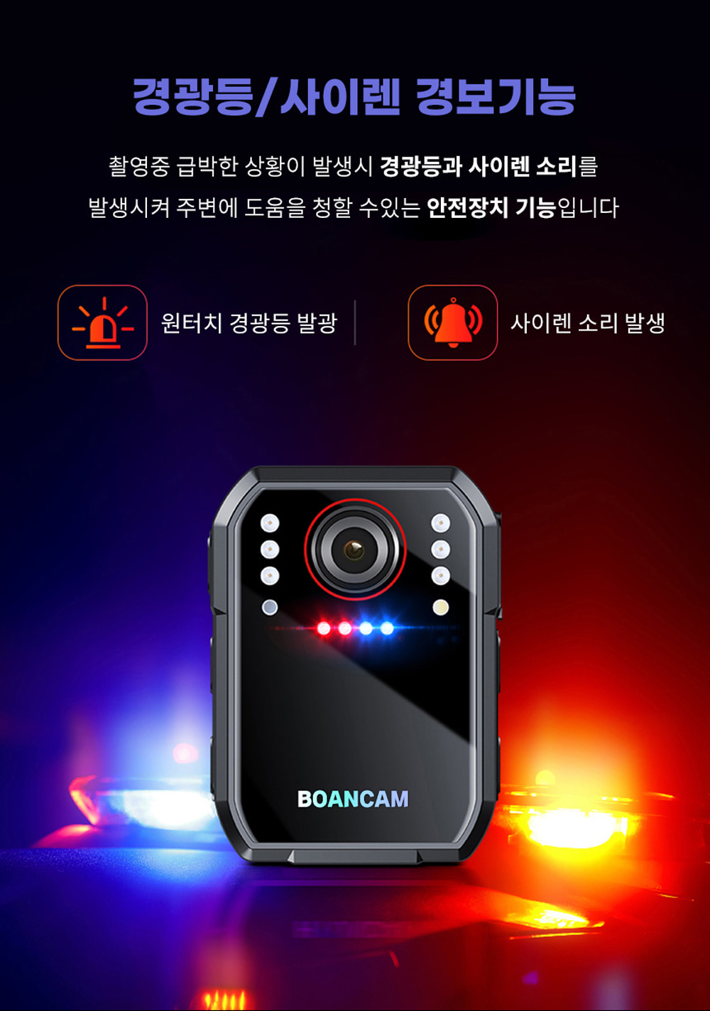 오래된 영상을 자동으로 덮어쓰는 오버라이트 기능과 최대 512GB 메모리 호환으로 공간 걱정을 덜 수 있습니다. 또한, 원터치 적용 및 음성기능 안내는 사용자 편의성을 한층 높여줍니다. 긴 대기시간과 장시간 촬영이 가능해 장시간 모니터링 또는 여행에서도 유용하게 사용할 수 있습니다. 이외에도 파손방지 설계, 경광등/사이렌 경보기능, 초간편 긴급촬영 및 동작감지촬영 기능이 포함되어 있어 안전한 기록을 보장합니다.
