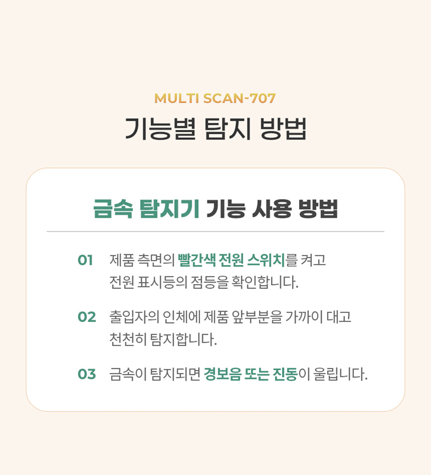 경고 알람 기능도 중요합니다. 탐지가 이루어지면 소리와 진동으로 즉시 알림을 주기 때문에 빠르게 대처가 가능합니다. 이뿐만 아니라 소형과 경량으로 제작되어 휴대성이 뛰어나, 언제 어디서나 손쉽게 휴대할 수 있는 것도 큰 장점이에요.
