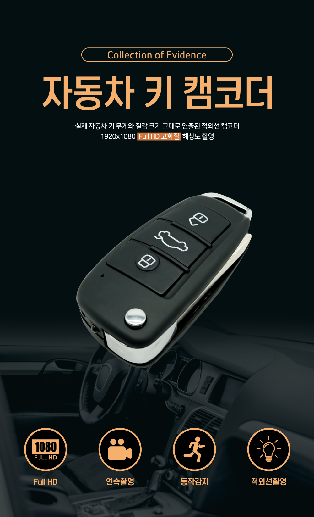 스파이캠코더는 숨겨진 카메라 기술의 정점을 보여주는 장비에요. 여러가지 기능 중에서도 특히 어두운 조건에서도 선명한 영상을 제공하는 적외선 야간 영상 캠코더 기능이 눈에 띄어요. 스파이캠코더는 작은 크기의 소형차키 디자인으로 휴대성을 극대화했구요, 필요할 때는 폴딩형 자동치키로 변신하여 자연스럽게 사용이 가능해요. 고화질의 영상을 촬영할 수 있는 캠코더 기능과 고해상도의 사진 촬영 기능도 제공되며, 연속녹화모드와 동작감지녹화 기능까지 지원해서 다양한 상황에서 활용할 수 있어요. 또한, 충전 중에도 영상을 촬영할 수 있어 배터리 걱정 없이 장시간 사용이 가능해요.