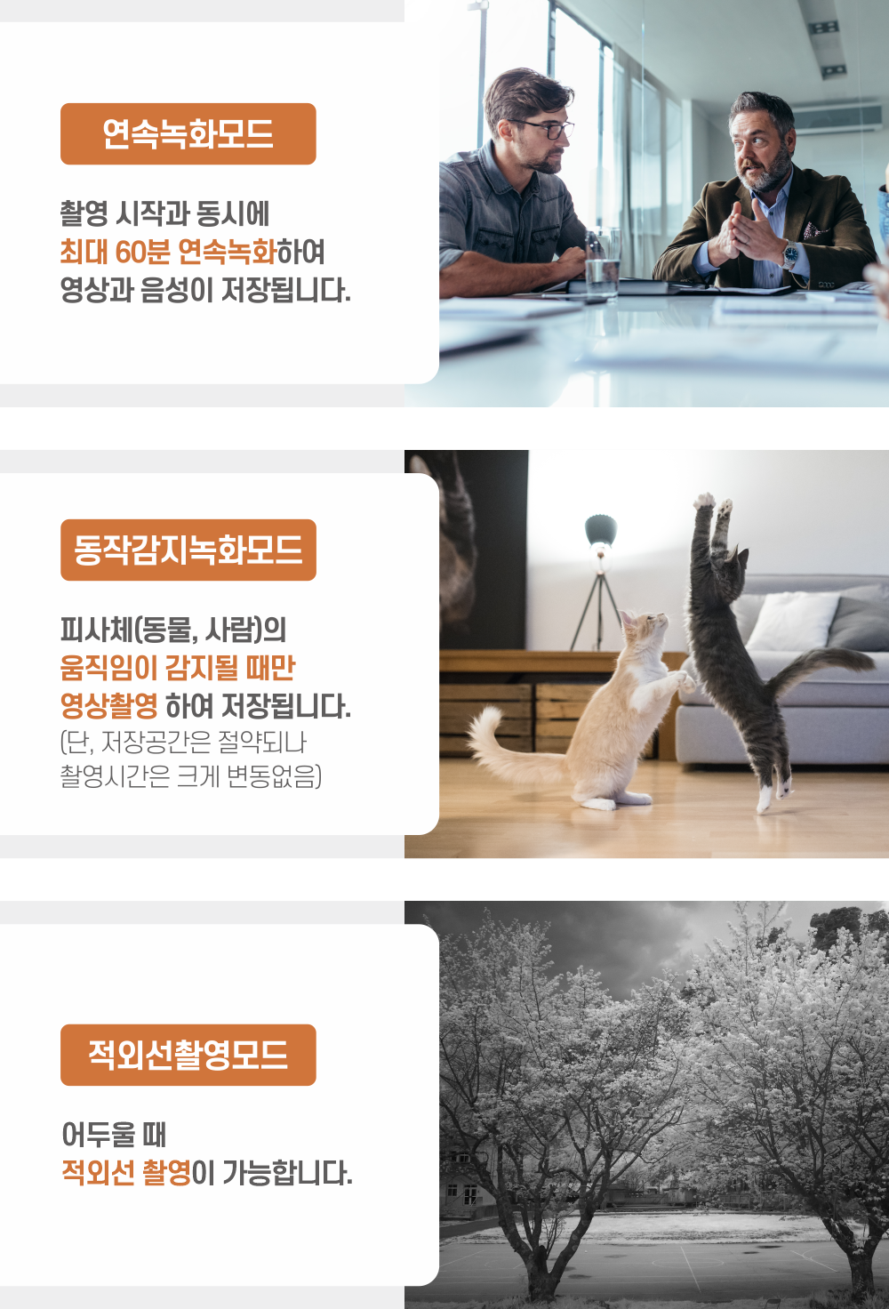 적외선 야간 영상 캠코더 기능은 어두운 환경에서도 선명한 영상을 촬영할 수 있게 해 줍니다. 이 기능은 특히 야간에 발생할 수 있는 다양한 상황에서 유용하게 활용될 수 있어요. 예를 들어, 보안 목적으로 주택 주변을 감시하거나, 특정 상황에서 증거를 기록할 때 효과적입니다. 또한, 연속 녹화 모드와 동작 감지 녹화 기능은 장시간 녹화가 필요하거나 움직임이 감지될 때만 녹화를 시작해야 하는 상황에서 매우 유용합니다.