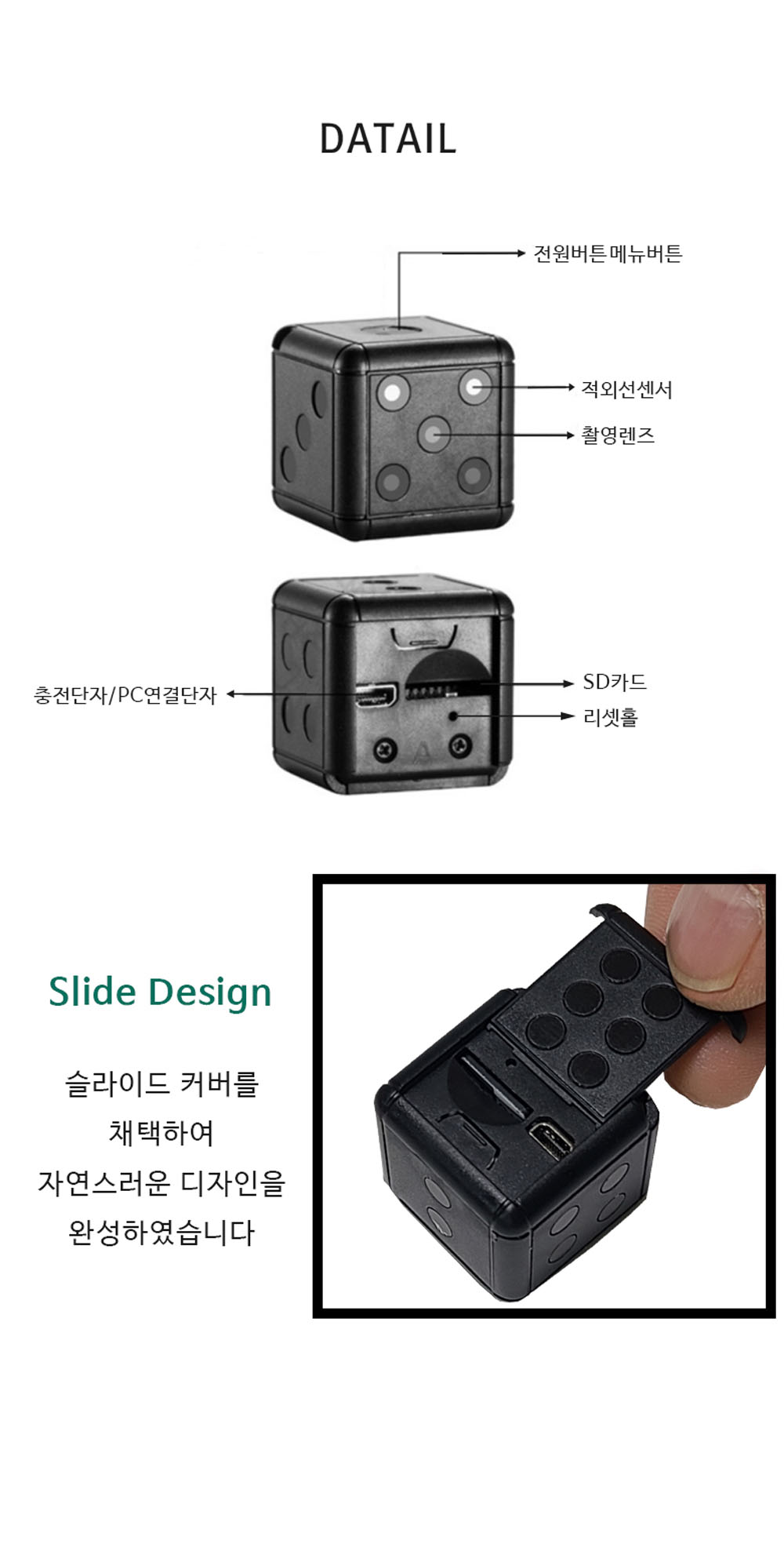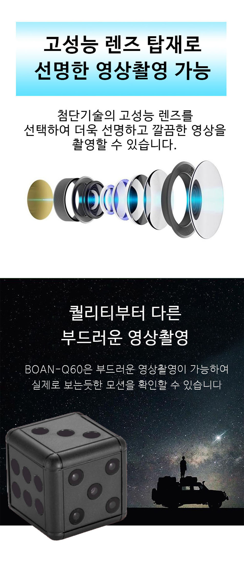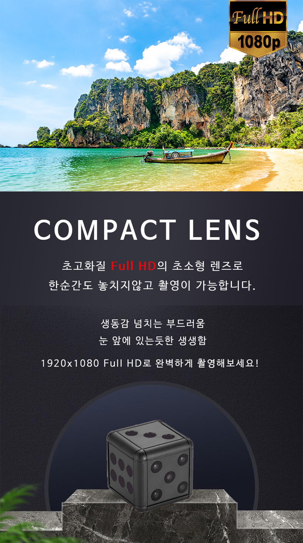 또한, 주사위 형태의 디자인은 휴대와 설치가 용이하게 해줍니다. 작고 가벼운 디자인 덕분에 어디든 쉽게 배치할 수 있어요. 풀HD 고화질 영상과 3D 프레임 안정성 덕분에 더욱 선명하고 흔들림 없는 영상을 제공합니다. 게다가 촬영 시 불빛이나 진동이 없어 비밀스럽게 촬영이 가능하다는 점도 눈여겨볼 만해요.