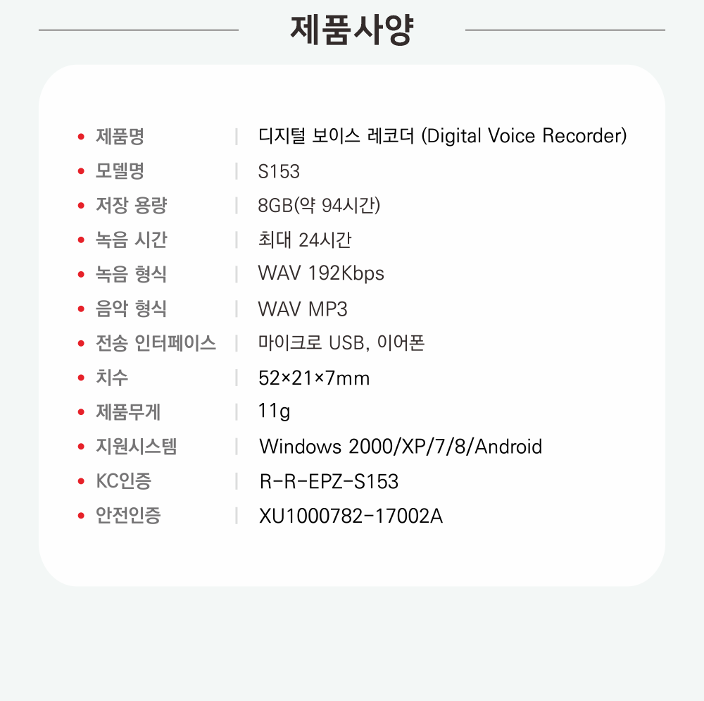 고음질 DSP 기능 보이스레코더로 편리한 녹음 경험을 느껴보세요