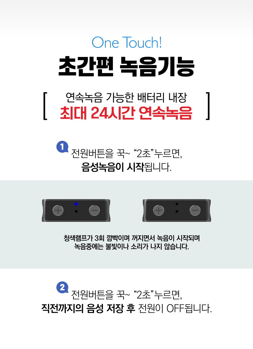 사용법도 정말 간단해요. 전원 버튼을 2초 누르면 바로 녹음이 시작되고, 다시 한 번 2초 누르면 녹음이 종료돼요. 누구나 쉽게 사용할 수 있는 직관적인 디자인 덕분에 복잡함 없이 중요한 순간들을 기록할 수 있답니다. 이처럼 편리하게 사용할 수 있는 초소형 녹음기는 바쁜 일상 속에서도 유용하게 활용될 거예요.