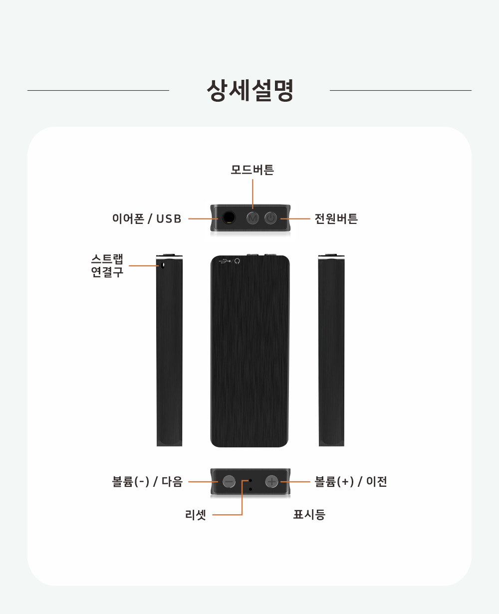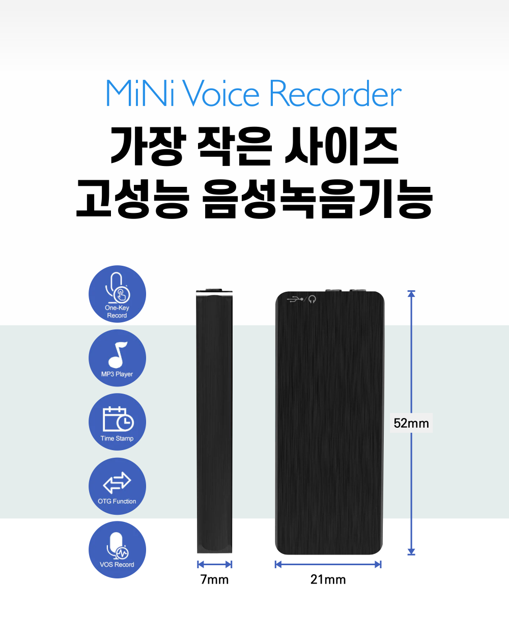 고급스러운 초소형 녹음기는 중요한 순간들을 놓치지 않고 기록할 수 있는 완벽한 솔루션이에요. WAV 192kbps의 고음질 녹음 형식 덕분에, 회의나 인터뷰에서 놓칠 수 있는 미세한 소리까지 정확하게 포착할 수 있답니다. 게다가 mp3 음악 파일도 지원하니, 녹음기 하나로 다양한 기능을 누릴 수 있어요. 크기가 52*21*7mm로 작지만, 8GB 플래시 메모리가 탑재되어 있어 최대 100시간까지 녹음을 저장할 수 있어요.