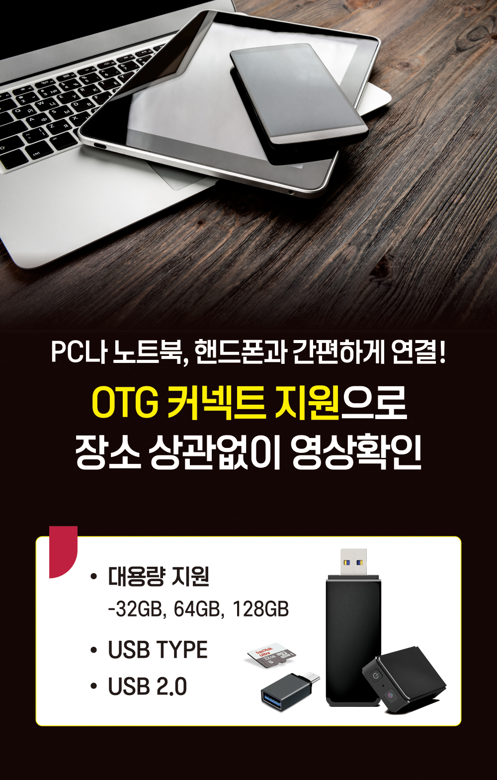 USB 메모리 기능 덕분에 노트북이나 스마트폰에 쉽게 연결할 수 있어요. 영상을 촬영할 때 진동이나 불빛, 소리가 없어 비밀스럽게 사용할 수 있죠. 이 제품은 상시전원연결 촬영이 가능하며 최대 128GB 대용량 메모리를 지원합니다. 무엇보다도 USB 위장형 디자인 덕분에 눈에 띄지 않아요. 또한 내구성이 높아 오랫동안 사용할 수 있습니다.