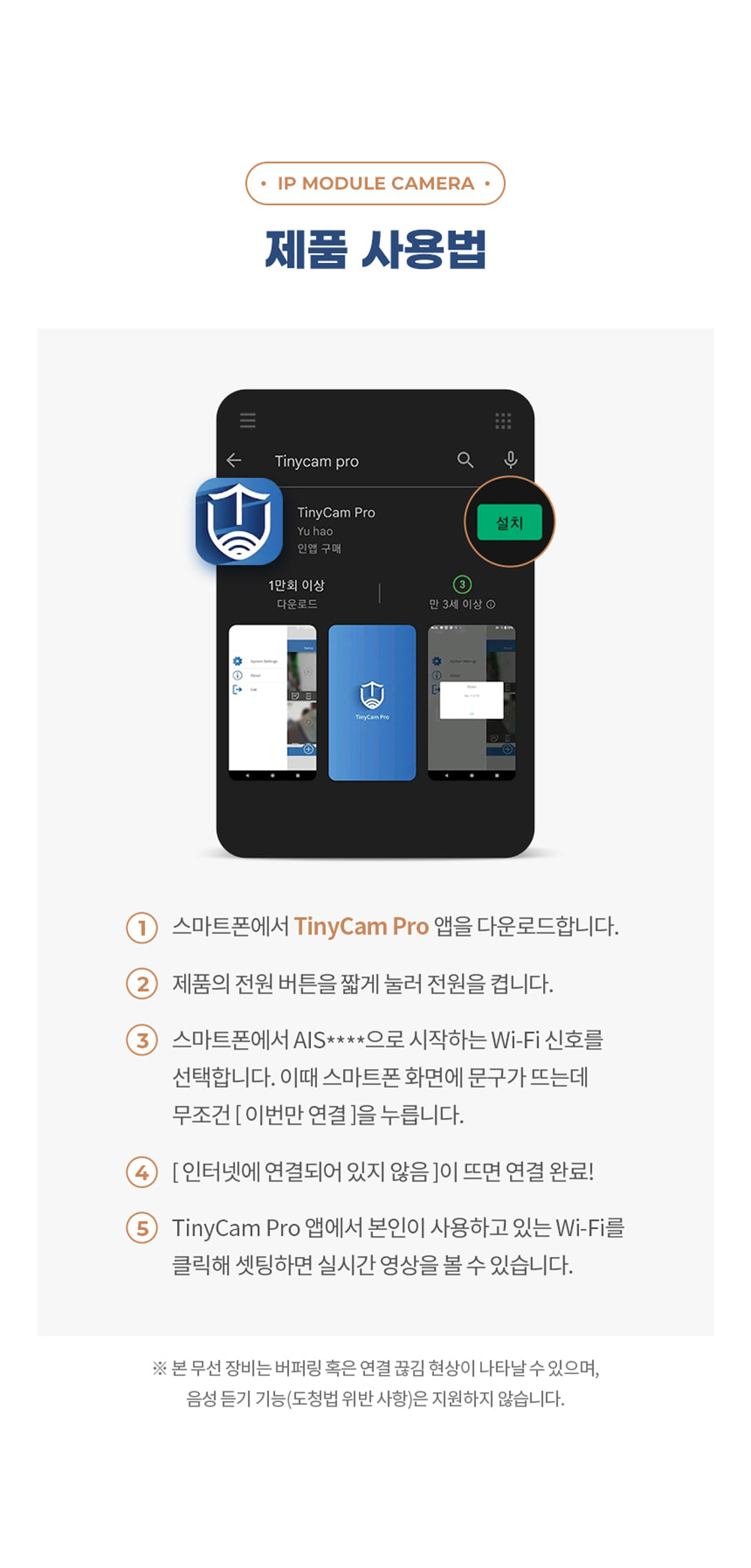 사용법도 매우 간단해서 누구나 쉽게 사용할 수 있어요. 카메라 모듈에 전원을 연결하고 스마트폰에 전용 앱을 설치하면 되는데요, 스마트폰에서 AIS 와이파이를 잡고 앱에서 카메라를 추가하면 됩니다. 이렇게 하면 손쉽게 원격에서 실시간 영상을 확인할 수 있답니다. 사용설명서를 한번만 읽어보시면 더욱 쉬워질 거예요.