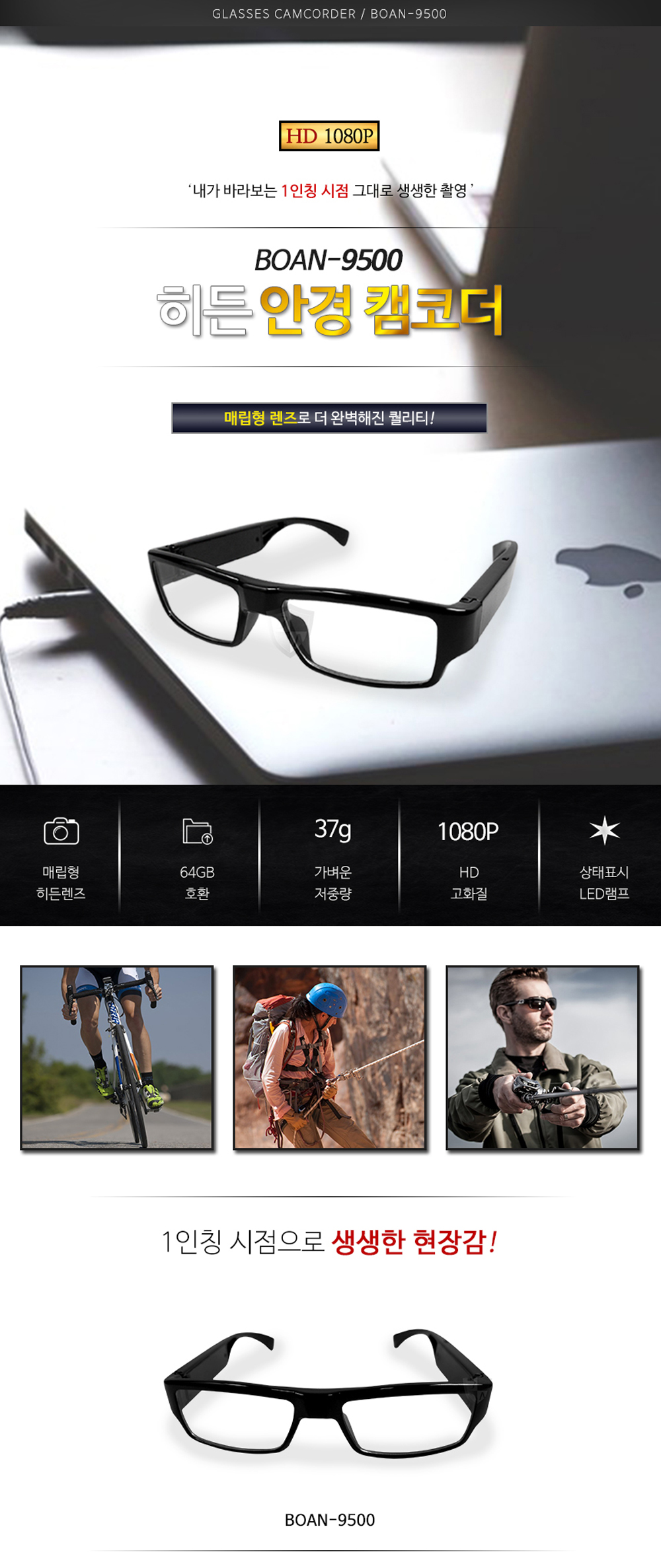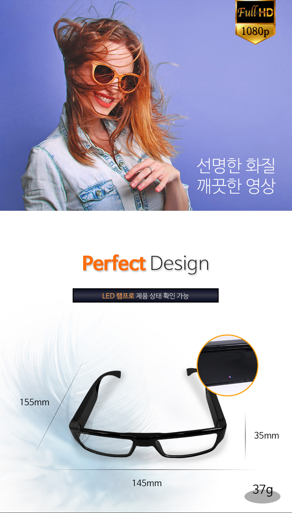 소형카메라는 두 손이 자유로워지는 1인칭 시점에서 촬영이 가능해요. 매립형 렌즈 덕분에 겉보기에는 그냥 평범한 안경처럼 보여 위장성이 뛰어나고요. 게다가 어떤 각도에서 보아도 전원버튼이 보이지 않는 설계 덕분에 일상에서 사용하기에 무리 없는 제품이에요. 조작이 간편한 원터치 방식이라 쉽게 사용할 수 있고, 한 번 충전으로 연속 60분까지 촬영이 가능하다는 점도 높은 편리함을 제공합니다. 디자인 면에서도 럭셔리함과 세련됨을 자랑해, 패셔너블한 아이템으로 손색이 없어요.