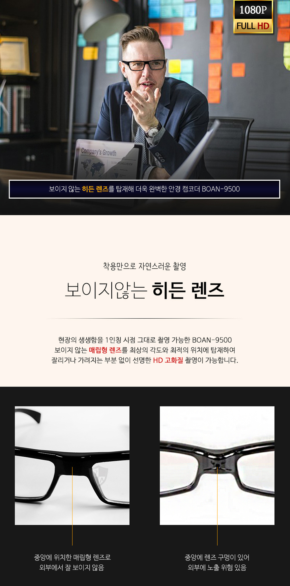 소형카메라는 일상의 스냅샷을 새로운 차원으로 이끌어줍니다. 특히, 자연스러운 패션 안경 디자인에 풀HD 고화질 동영상 촬영 기능이 더해져, 일상의 순간을 음성과 함께 생생하게 기록할 수 있어요. 무엇보다도 눈으로는 보이지 않는 매립형 렌즈 덕분에 어떤 상황에서도 자연스럽게 사용할 수 있답니다. 오토 화이트밸런스 기능이 적용되어 언제 어디서 찍어도 선명하고 색감을 그대로 유지할 수 있는 점도 큰 장점이에요.