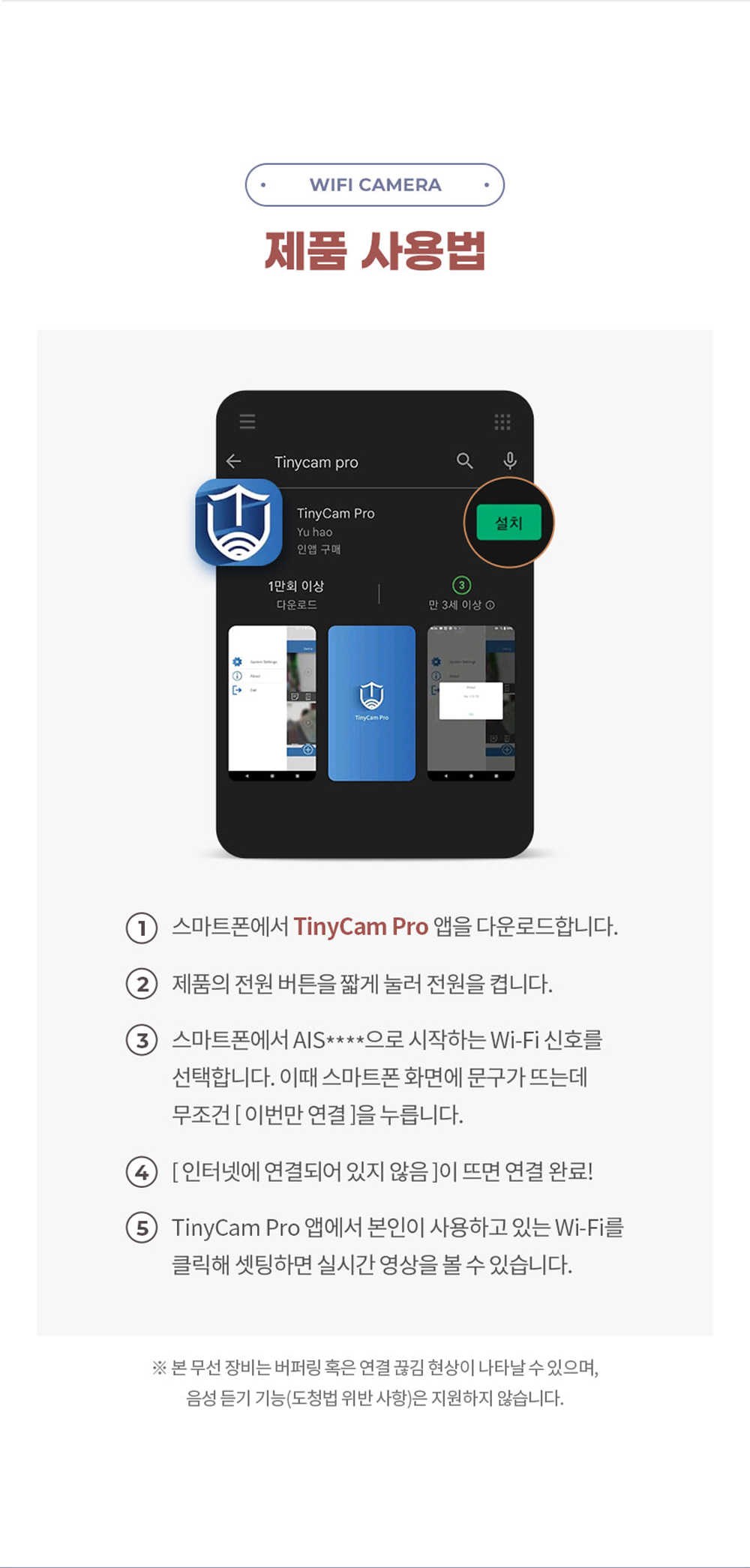 이 제품은 윈도우7, 8과 Mac Os X 등 다양한 운영체제에서 호환 가능해요. 실시간으로 스마트폰을 통해 확인할 수 있어서 언제 어디서나 상황을 모니터링할 수 있답니다. 입력 전원은 DC 5V / 2A로 안정적인 사용이 보장되구요. 동작감지 촬영 기능까지 갖춰 필요할 때만 자동으로 촬영을 시작하니 메모리 용량도 효율적으로 사용할 수 있어요.