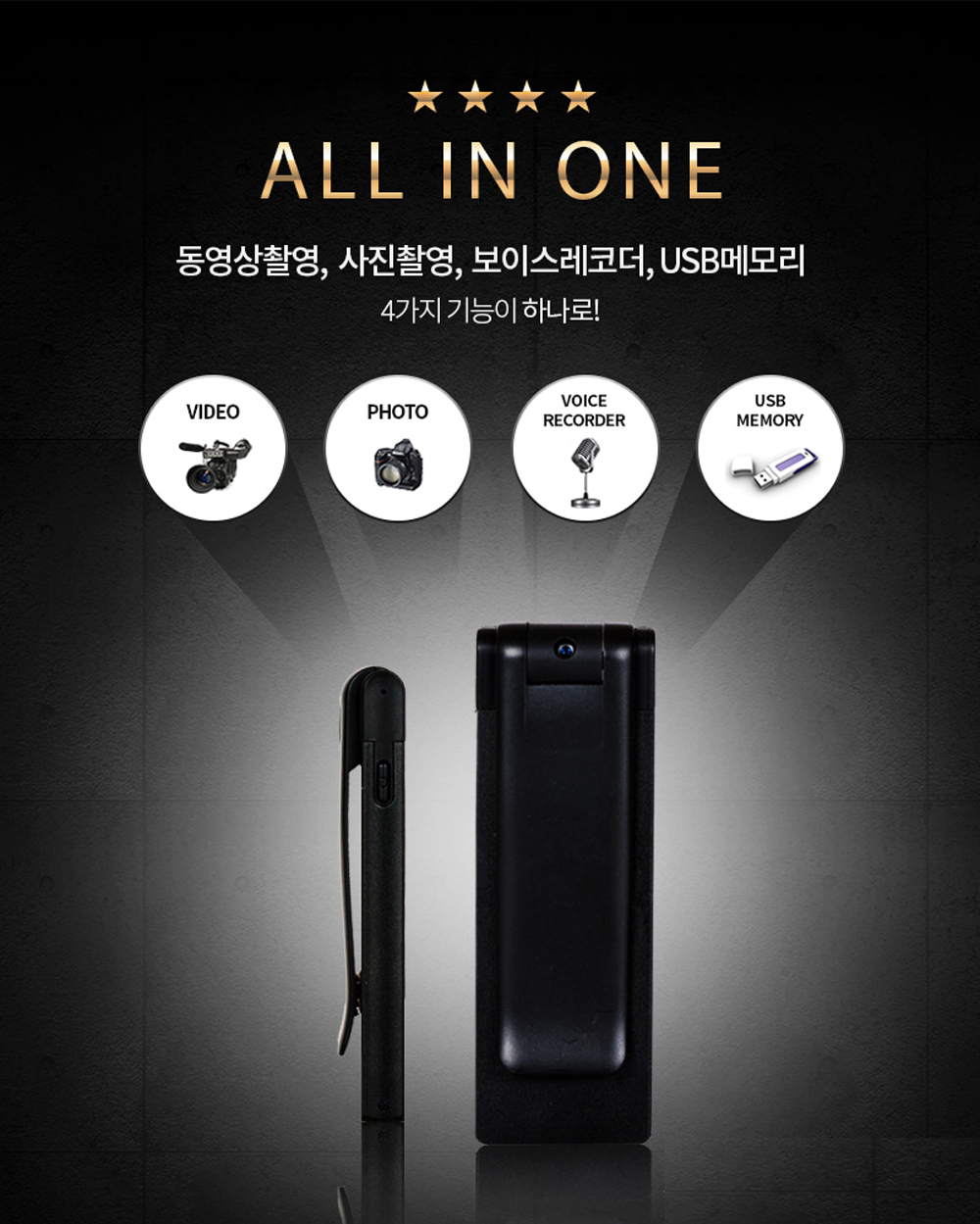 이 미니캠은 찰탁식 클립 타입으로 간편하게 설치할 수 있는데요, 이렇게 편리한 사용 방식 덕분에 일상에서의 활용도가 높아집니다. 블랙바디의 심플한 디자인은 어떤 환경에서도 잘 어울리고 촬영 시 불빛이나 소리, 진동이 없어 은밀하게 사용할 수 있어요. 연속 2시간 촬영, 동작 감지 대기 약 4시간, 대용량 64GB 메모리까지 적용되어 있어 연속적으로 오랜 시간 영상을 촬영할 수 있으니 정말 효율적이에요.