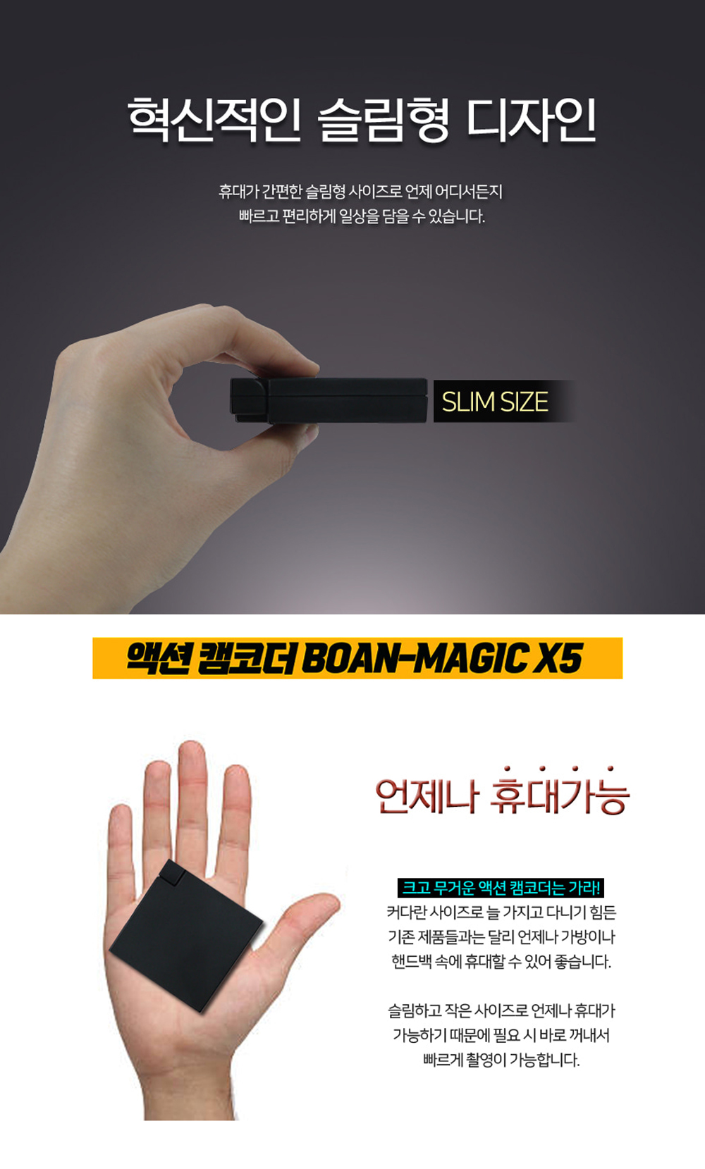 초슬림 초소형 사이즈의 미니캠코더는 그 자체로 큰 장점이에요. 주머니에 쏙 들어가는 크기로 언제 어디서든 간편하게 휴대할 수 있죠. 이로 인해 여행이나 야외 활동 시에도 부담 없이 챙길 수 있으며, 빠르게 꺼내어 촬영할 수 있는 점이 큰 매력입니다.