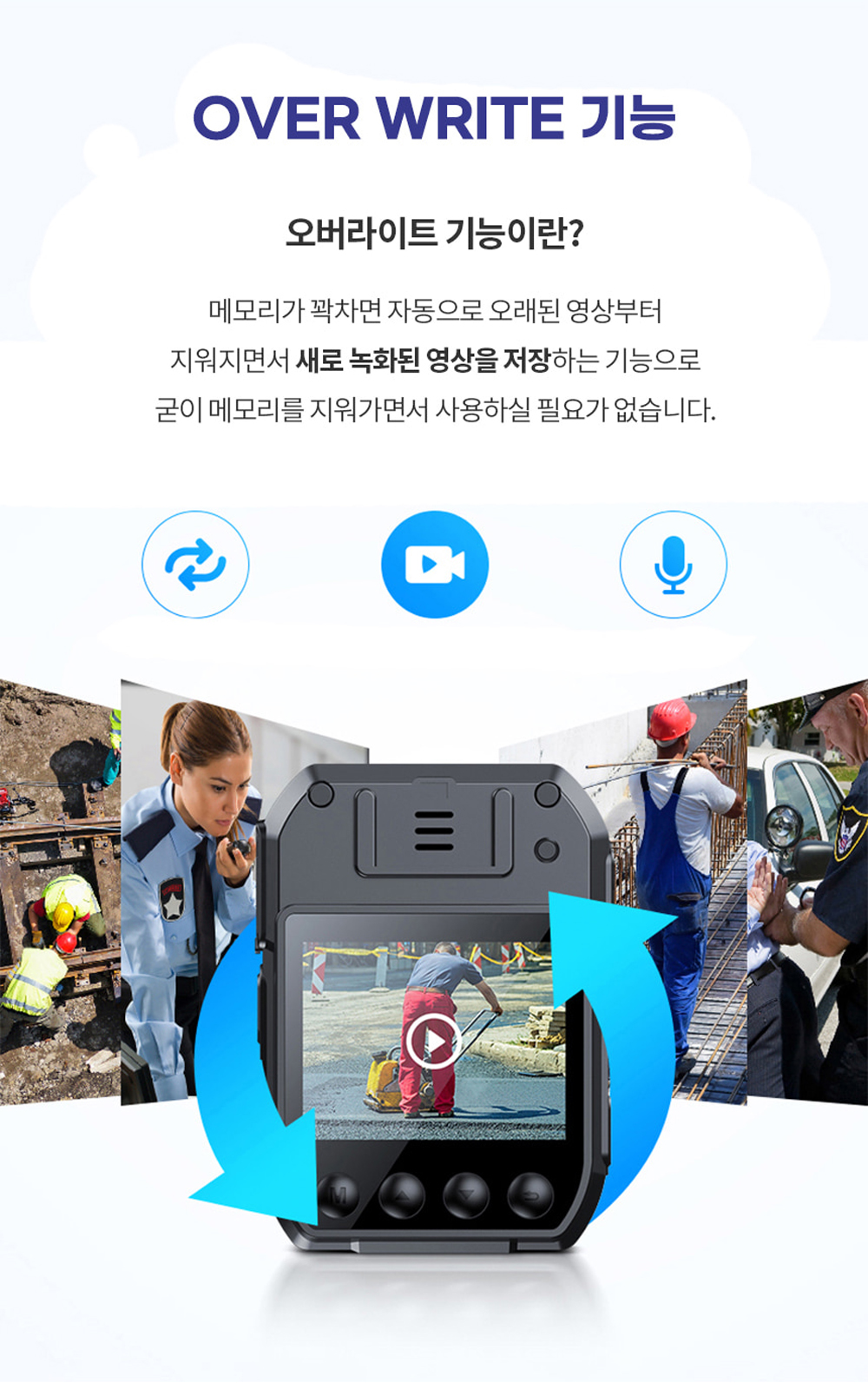 무선소형카메라의 또 다른 매력적인 기능 중 하나는 오버라이트(덮어쓰기) 기능입니다. 이 기능은 오래된 영상을 자동으로 새로운 영상으로 덮어쓰기 때문에 메모리 관리가 용이합니다. 장시간 대기 기능과 64GB부터 최대 512GB까지 메모리 호환이 가능하여, 장시간 녹화가 필요한 경우에도 안심하고 사용할 수 있습니다.