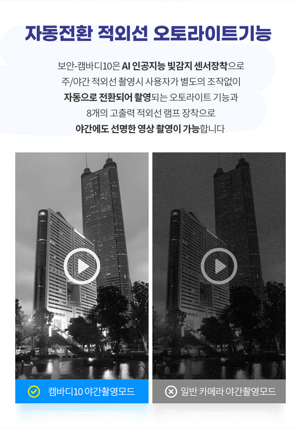 또한 적외선 촬영 기능이 탑재되어 있어 어두운 환경에서도 문제없이 작동합니다. 밤에 정원이나 주차장을 감시해야 하는 경우, 이 기능은 큰 도움이 됩니다. 방진/방수 기능도 포함되어 있어, 비나 먼지가 많은 야외 환경에서도 무리 없이 사용할 수 있어요.