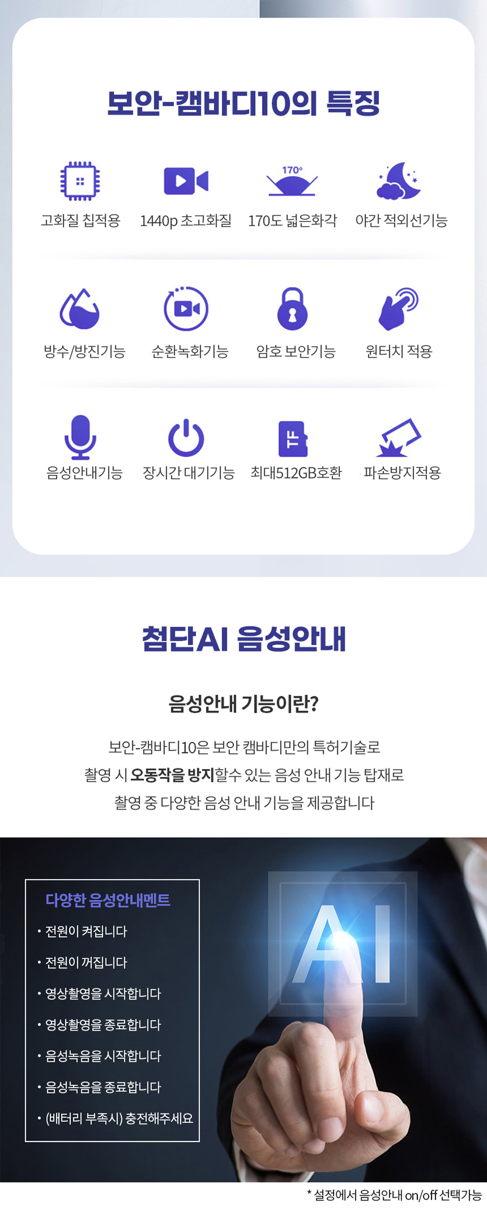 무선소형카메라의 장점은 바로 이런 다채로운 기능들이 제공하는 안전성과 편리함에 있습니다. 방진, 방수, 파손방지 설계로 강한 내구성을 자랑하고, 오버라이트 기능은 메모리 걱정 없이 장기적인 사용을 지원합니다. 또한, AI 음성 안내 기능과 원터치 촬영 기능은 사용의 간편함을 극대화해 줍니다. 이러한 점들은 사용자에게 안전하고도 효율적인 경험을 선사해줄 거예요.