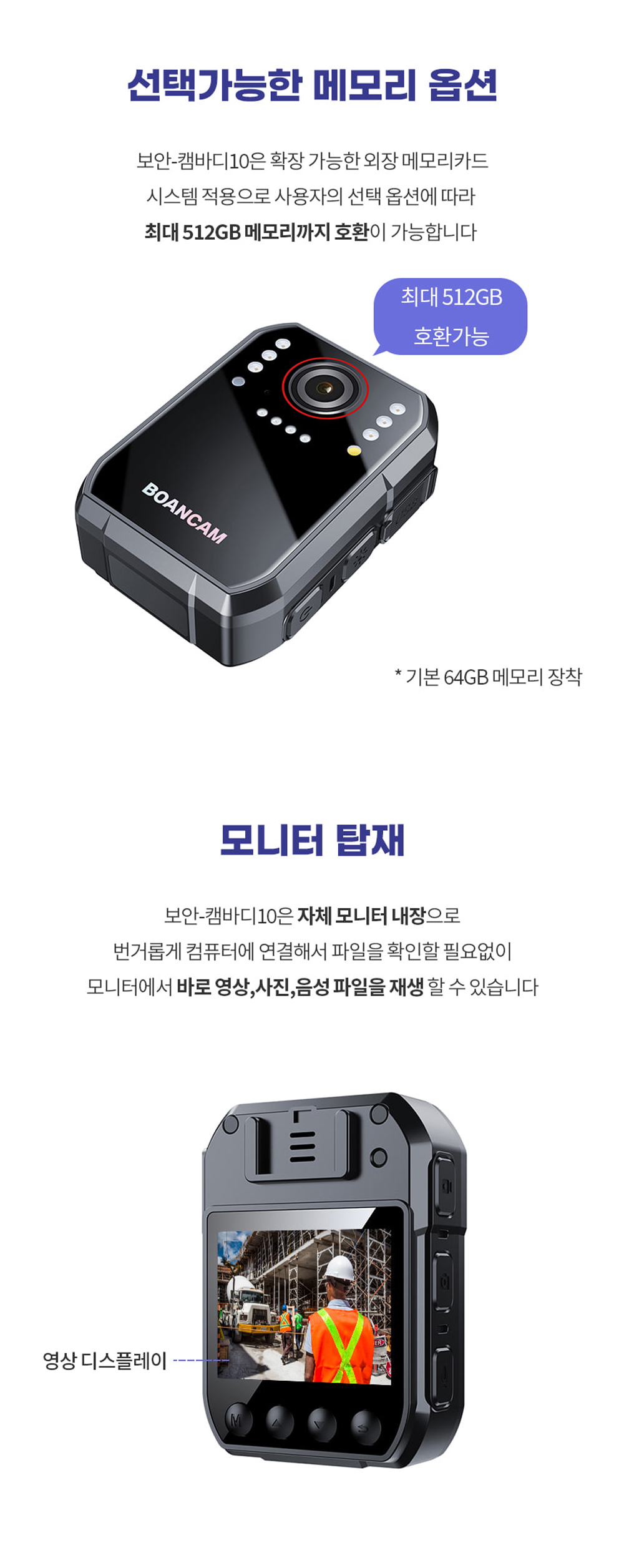 이 제품은 방진방수 등급이 IP68이라 야외 활동 중에도 안심하고 사용할 수 있어요. 또, 1.5인치 LCD 모니터가 있어 촬영된 영상을 바로 확인할 수 있는 장점도 있답니다. 메모리는 최대 512GB까지 확장 가능하여 많은 양의 데이터를 저장할 수 있어요. 비디오 포맷은 MP4를 사용하고, 압축 방식은 H.265로 효율적인 저장이 가능해요.